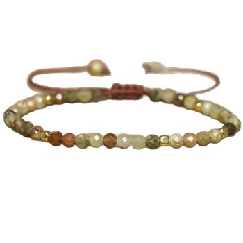 新作4mmグリーンガーネットビーズブレスレット女性用天然宝石ツァボライト調整可能なヒーリングクリスタルデインティストーンブレスレット